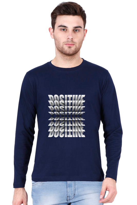Men's Round Neck Full Sleeve T-Shirt with Positive Sticker